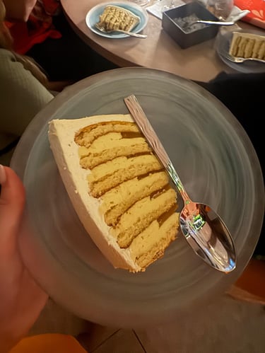 A light and refreshing mango–passion fruit cake featuring an ultra-soft sponge, vibrant fruit confit, silky ganache cream, and a delicate marshmallow finish. Entirely sugar-free